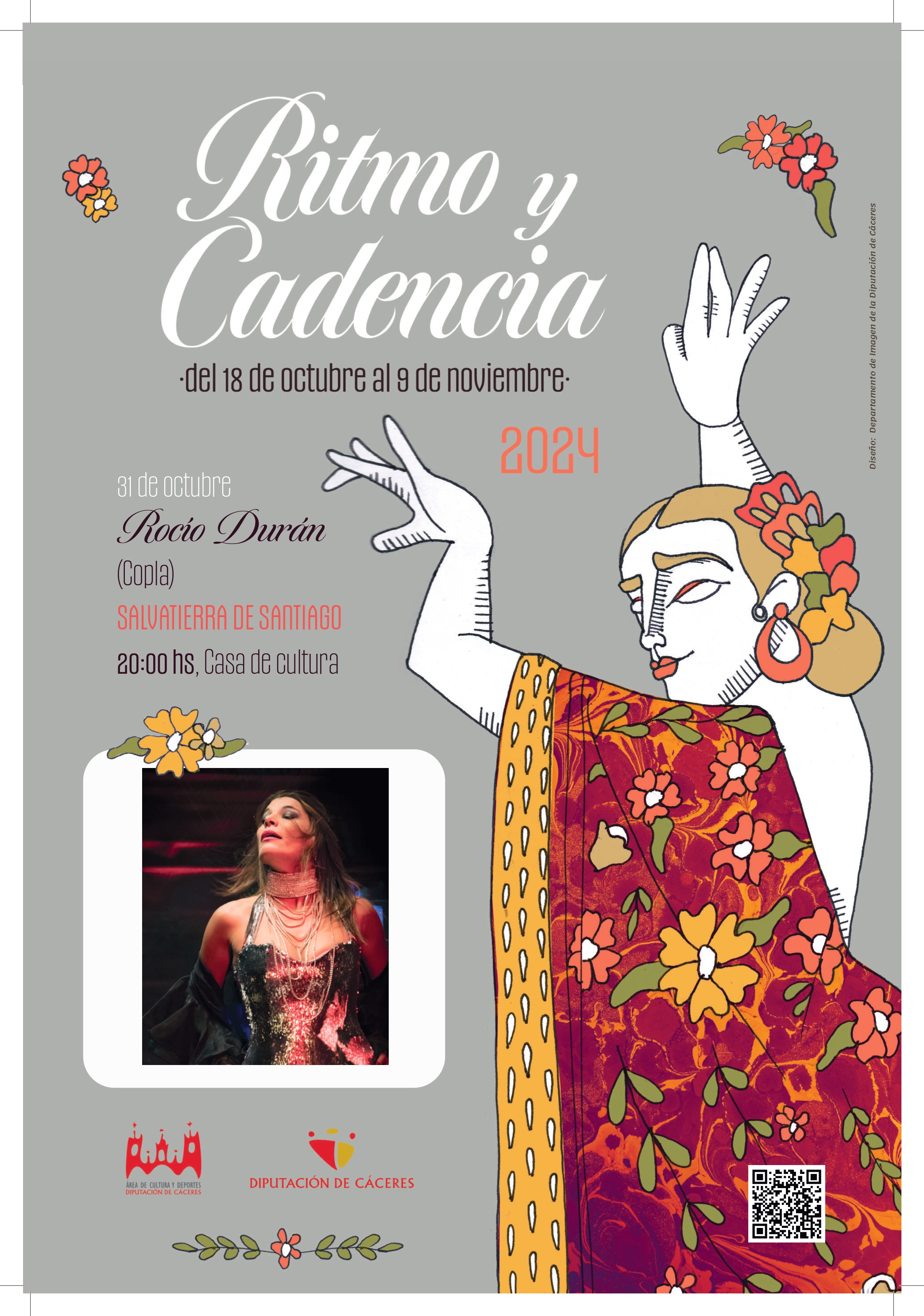 El próximo 31 de octubre, acompáñanos en Salvatierra de Santiago para disfrutar de la increíble voz de Rocío Durán en un emotivo recital de copla ¿¿. Forma parte del festival Ritmo y Cadencia 2024 y vive una noche inolvidable de música y arte.